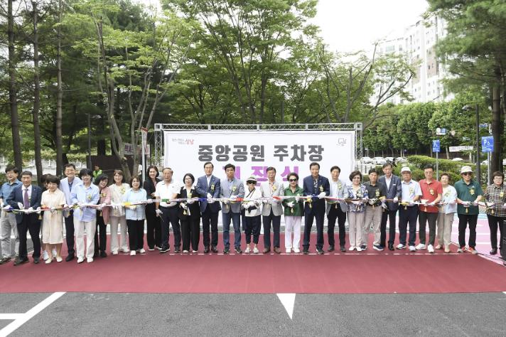 중앙공원 주차장 확충 개장식은 10일 오후 4시 신상진 성남시장과 도의원, 시의원, 지역주민 등 150여 명이 참석한 가운데 열렸다.