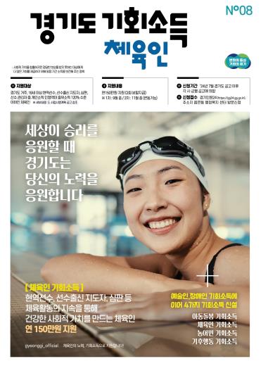 체육인 기회소득은 경기도 내 시군에 주민등록을 둔 19세 이상 체육인에게 연간 150만 원을 2회에 걸쳐 지급하는 것으로 개인별 소득 인정액이 2024년도 기준 중위소득 120%이하(월 2,674,134원)에 해당하는 체육인이 대상이다.
