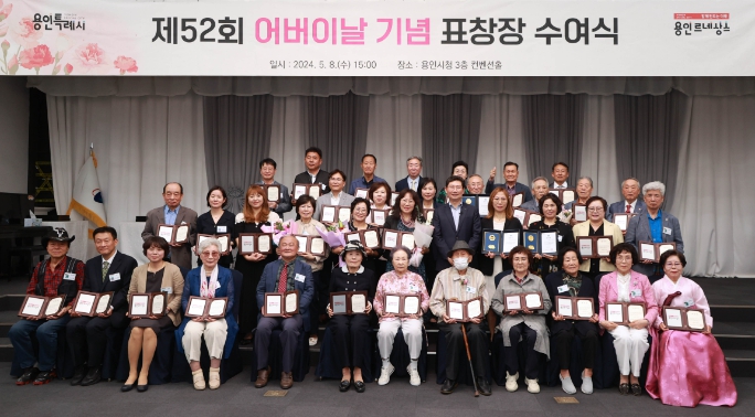 [뉴스서치] 용인특례시는 지난 8일 ‘제52회 어버이날’을 맞아 시청 컨벤션홀에서 효행자 18명과 장한 어버이 25명에게 표창장을 수여했다.