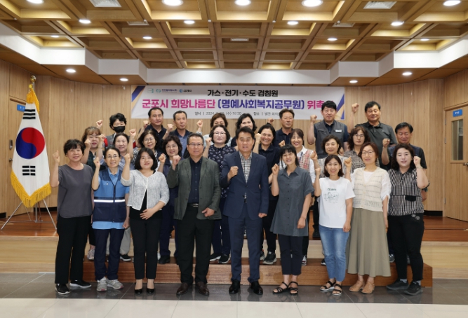 [뉴스서치] 군포시는 6월 19일 복지사각지대 발굴·지원을 위한 가스·수도·전기분야 검침원과 생활업종 종사자 64명을 희망나름단(명예사회복지공무원)으로 위촉하여 활동교육을 진행했다.