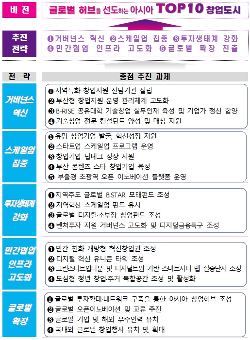 '기술창업 지원 종합계획'은 부산을 '아시아 TOP10 창업도시'로 만들기 위한 이행안(로드맵)이다.