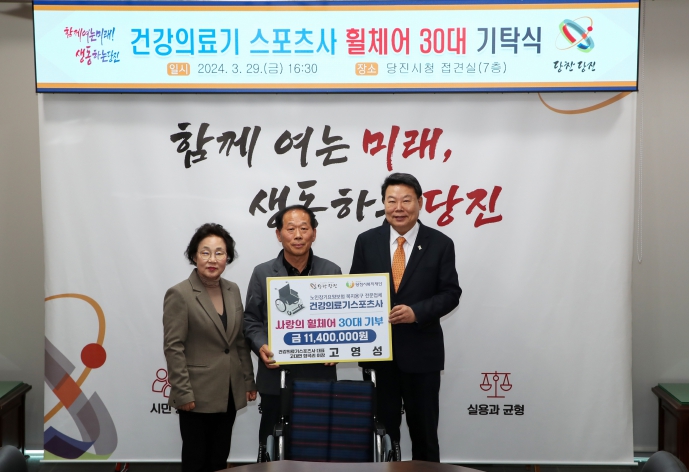 이날 기부된 휠체어는 당진시청, 당진시보건소, 당진시노인복지관 등 11곳에 배분되며, 비치 및 대여용으로 시민들이 편리하게 이용할 수 있도록 할 예정이다.