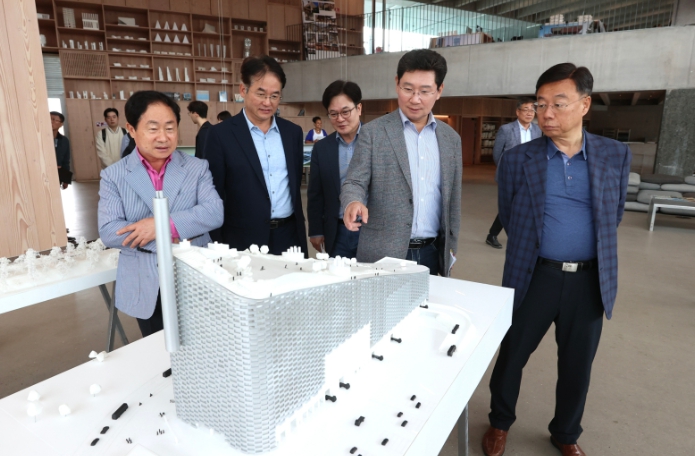 ▲ 아마게르 바케 친환경 소각장 모형을 둘러보고 있는 전국대도시시장협의회 시장단. |