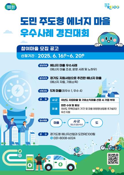 이번 경진대회는 위와 같은 에너지 마을 중 자립성과 공동체 역량이 뛰어난 사례를 발굴하기 위해 마련했다. 참가 대상은 경기도 지원으로 에너지 자립 또는 기회소득 마을사업을 추진한 마을로, ‘2024년 6월 1일 이전부터 1년 이상 신재생에너지 설비를 운영한 마을’ 또는 ‘운영 기간이 1년 미만이어도 주민협의체 활동, 기금 활용 등에서 우수한 실적을 보유한 마을’이다.