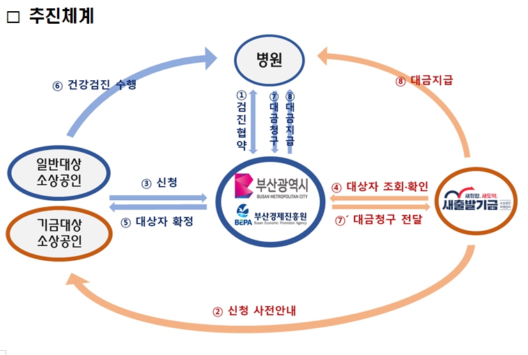 지난해 시는 사업수행기관인 부산경제진흥원과 이 사업을 추진해 1인당 20만 원씩 소상공인 400명의 종합건강검진비용을 지원했다.