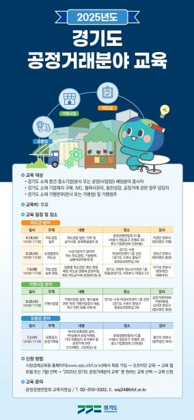 또한 교육 접근성 강화를 위해 공정거래 분야별 업체 분포도 및 기업체 임직원들의 시간·거리상 제약 등을 고려해 경기도 남·북부 등으로 나눠 개최한다.