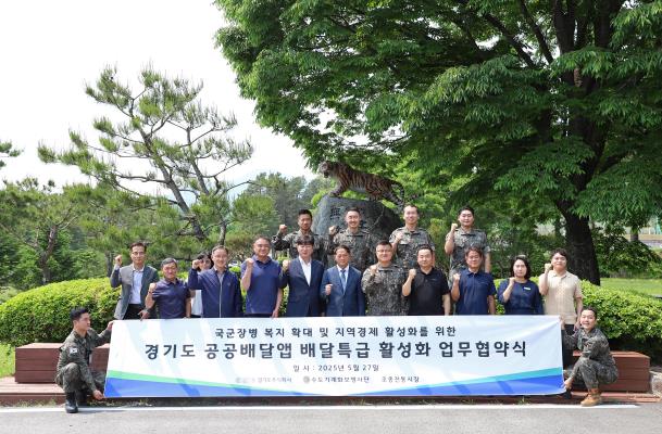 [뉴스서치] 경기도주식회사는 지난 27일 가평군 맹호부대에서 ‘국군장병 복지 확대 및 지역경제 활성화를 위한 경기도 공공배달앱 배달특급 활성화 협약’을 체결했다고 28일 밝혔다.