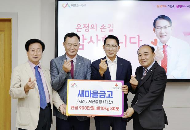 시는 이날 시청 시장실에서 이완섭 서산시장, 김호종 서산새마을금고 이사장, 가제현 서산중앙새마을금고 이사장, 김문경 대산새마을금고 이사장 등이 참석한 가운데 기탁식을 개최했다.