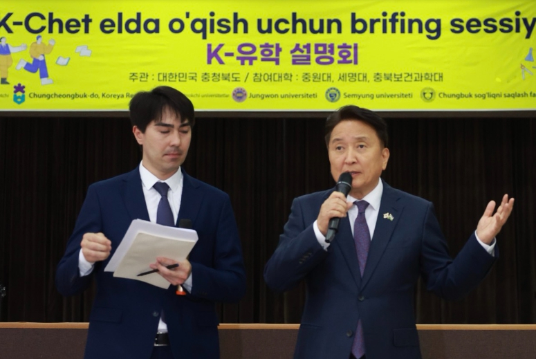우즈베키스탄의 수도 타슈켄트 한국교육원 강당에서 진행된 유학설명회에는 김영환 충청북도지사, 황윤원 중원대 총장, 정기신 세명대학교 국제교류처장, 유영오 충북보건과학대학교 국제협력실장, 팽주만 타슈켄트 한국교육원장 및 학생 200여 명 등이 함께했으며, K-유학생 설명회를 열고 사업에 대한 홍보 및 대학-학생 간 1:1 상담 등 유학생 모집 활동을 펼쳤다.