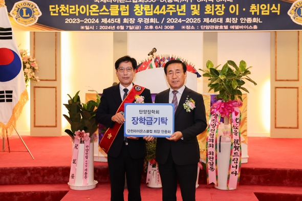 안종화 단천라이온스클럽 취임 회장, 단양장학회 장학금 기탁