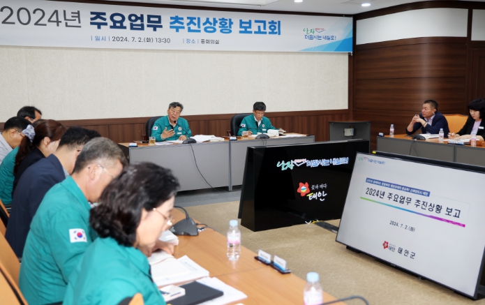군은 지난 2일 군청 중회의실에서 가세로 군수와 부군수, 부서장 등 공직자 50여 명이 참석한 가운데 ‘2024년 주요업무 추진상황 보고회’를 갖고 성공적 군정 운영 방향을 모색했다.