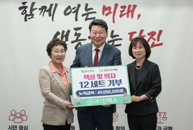 [뉴스서치] 당진시에 있는 사무용 가구 업체 ㈜인퍼스는 28일 학습환경이 열악한 지역 내 아동들에게 전달해 달라며 책상․의자 12세트를 당진시 드림스타트에 기부했다.