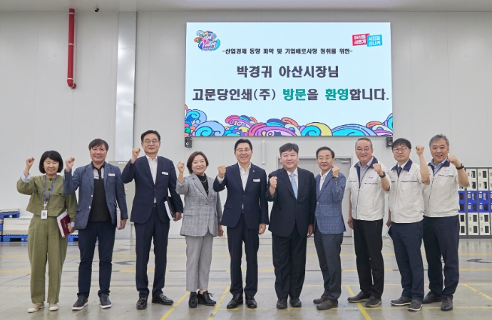 [뉴스서치] 박경귀 아산시장이 10일 고문당인쇄㈜ 아산공장을 방문해 생산 현장을 둘러보고 애로사항을 청취했다.