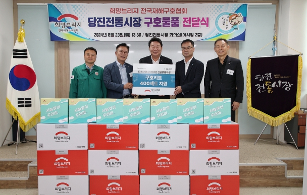 오성환 당진시장은 “경기침체와 수해 피해로 어려움을 겪고 있는 당진전통시장 상인들을 지원하기 위해 노력해 주신 희망브리지 전국재해구호협회에 감사하다”라며, “앞으로도 갑작스러운 재난으로 어려움을 겪고 있는 이웃들에 대한 지속적인 관심을 가져 주길 바란다”라고 말했다.