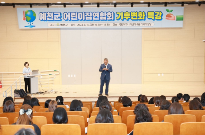 [뉴스서치] 예천군은 18일 복합커뮤니티센터 4층 다목적강당에서 관내 어린이집 원장과 교사들을 대상으로 ‘기후위기 특강’을 진행했다.