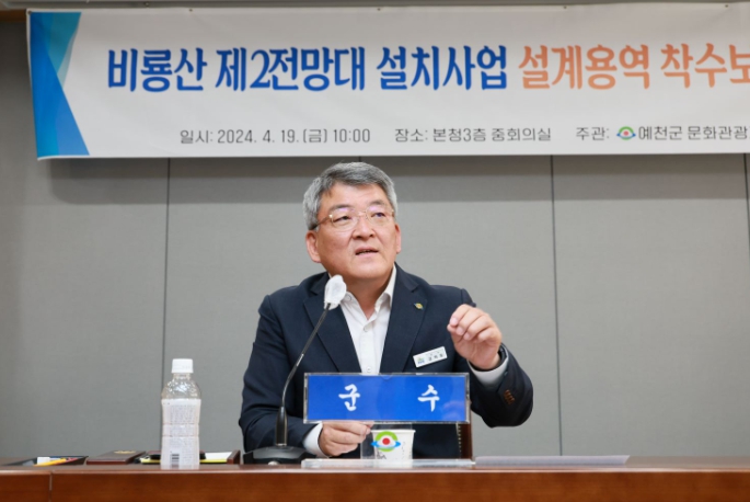 착수보고회에는 김학동 예천군수, 최병욱 군의장과 군의원 및 관계 부서장 등이 참석해 전망대 기본설계 안에 대해 논의하는 시간을 가졌다.