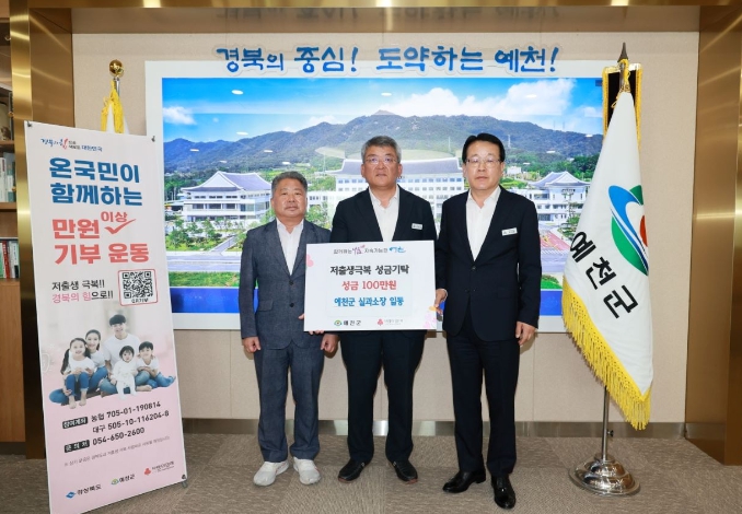 한편 예천군에서는 경상북도의 ‘저출생과의 전쟁선포(‘24. 1. 18)’에 따라 저출생극복을 위한 성금모금캠페인의 일환으로 전개되고 있는 ‘온 국민이 함께하는 만원(이상) 기부운동’을 진행하고 있다.