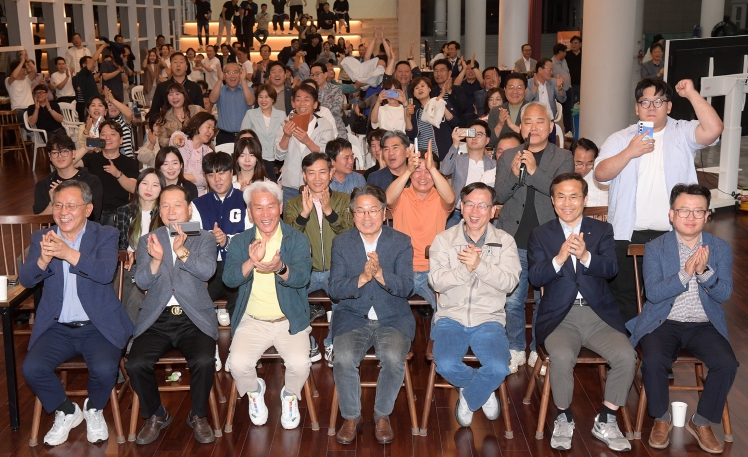 강기정 광주시장은 투표가 끝난 뒤에 3일 시청에서 시민들과 개표방송을 지켜봤다.