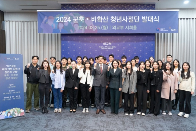 [뉴스서치] 외교부가 주최하고 동아시아연구원(EAI)이 주관하는 '2024 군축·비확산 청년사절단' 발대식이 3월 25일 외교부 18층 서희홀에서 개최됐다. 외교부는 국내외 대학(원)생 31명을 청년사절로 임명했다. 청년사절단은 선서를 통해 성실하고 책임 있는 자세로 활동에 임하겠다는 각오를 다졌다.