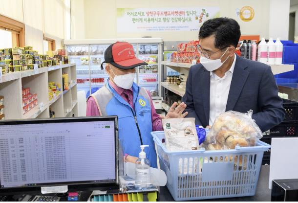 ▲ 푸드뱅크마켓센터 신정동 지점을 방문한 이기재 양천구청장 |