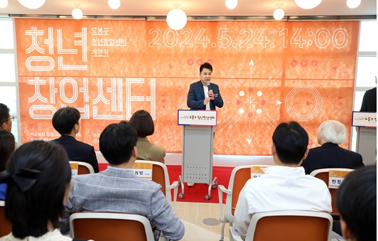 ▲ 오언석 도봉구청장이 지난 5월 24일 열린 도봉구 청년창업센터 개관식에서 축하 인사말을 하고 있다 |
