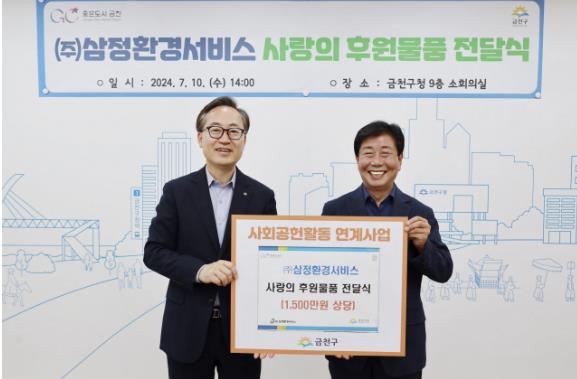 (주)삼정환경서비스는 2022년 라면 250박스와 현금 500만 원을 후원했으며, 2023년 금천구 따뜻한 겨울나기 사업에 현금 300만 원, 올해 상반기 설맞이 행복나눔 꾸러미 나눔 행사에 500만 원 상당의 물품을 기부했다.
