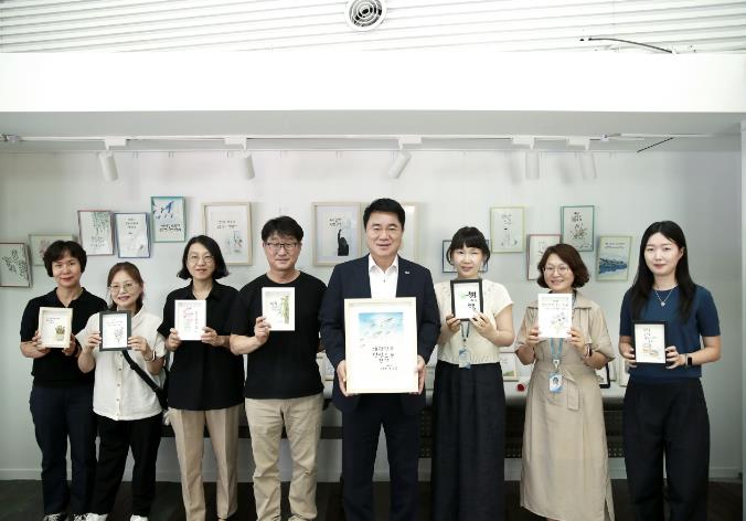 ▲ 작품을 들고 있는 구청장과 관악구청 직원들의 모습 |