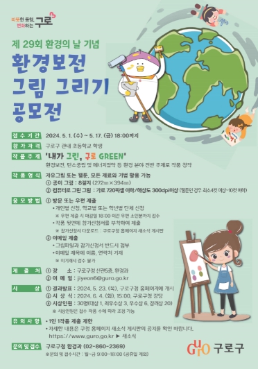 [뉴스서치] 구로구가 제29회 환경의 날을 맞이해 '환경보전 그림그리기 공모전'을 개최한다.