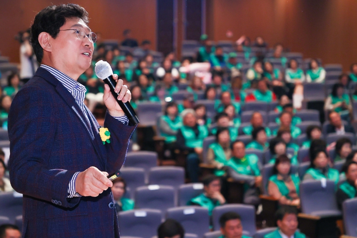 ▲ 25일 새마을의 날 기념식에서 이상일 용인특례시장이 새마을지도자를 대상으로 인문학 특강을 했다. |