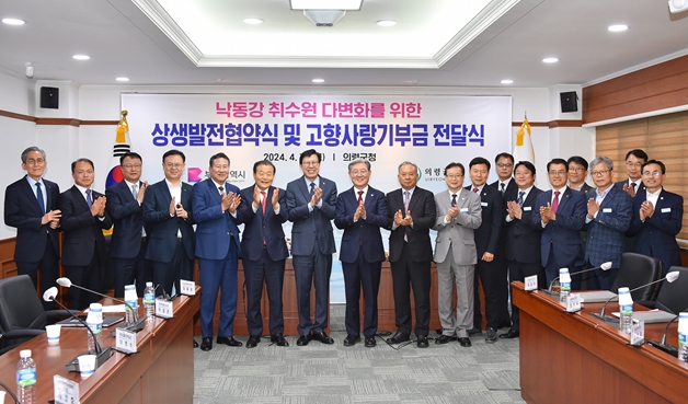 이날 상생협약식에는 평소 부산의 물 문제 해결에 많은 관심을 기울이고 있는 양재생 부산상공회의소 회장을 비롯해 재부경남향우연합회 회장, 재부의령향우회 수석부회장, 농협중앙회부산본부장 등도 참석해 이들과 시 직원이 마련한 총 2,100만 원의 고향사랑기부금을 전달하며 부산과 의령 간의 상생협력에 의미를 더했다.