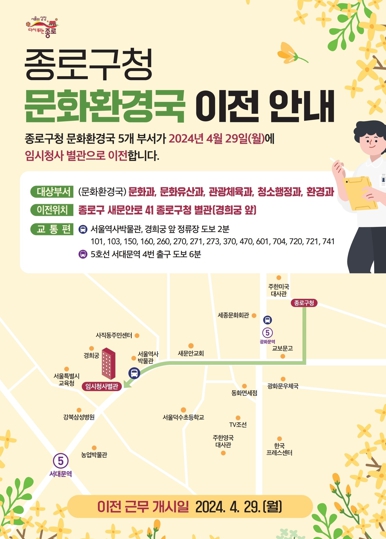 ▲ 종로구, 문화환경국 5개 부서 임시청사 별관으로 이전 |