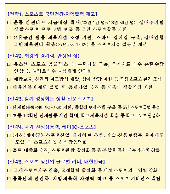 ▲ ‘제1차 스포츠 진흥 기본계획’ 주요 내용 |