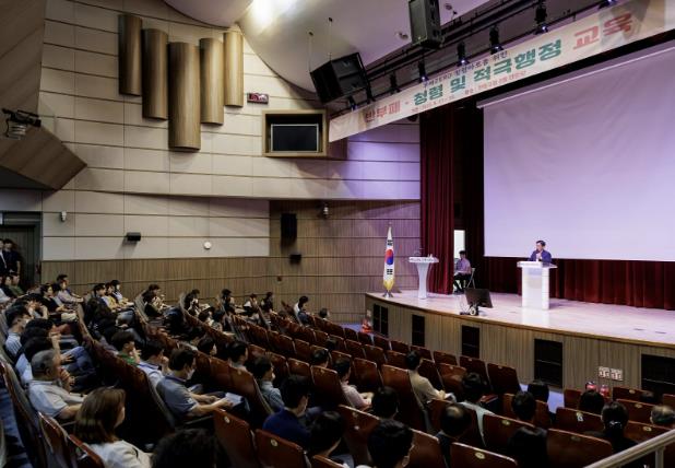 ▲ 지난해 마포구청 대강당에서 진행된 적극행정 교육에서 박강수 구청장이 적극행정의 필요성을 설명하고 있다 |