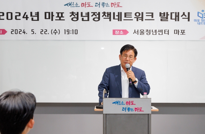 ▲ 2024년 마포 청년정책네트워크 발대식에서 인사말을 전하는 박강수 마포구청장 |