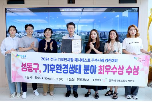 [뉴스서치] 서울 성동구가 ‘2024 전국 기초단체장 매니페스토 우수사례 경진대회’에서 ‘기후환경생태 분야’ 최우수상을 수상해 8년 연속 최우수상의 영예를 얻었다.