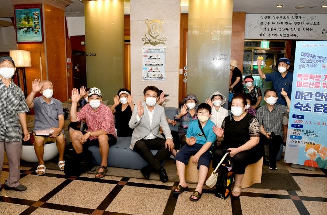 | ▲ 야간무더위쉼터에 방문한 오승록구청장과 주민들 |