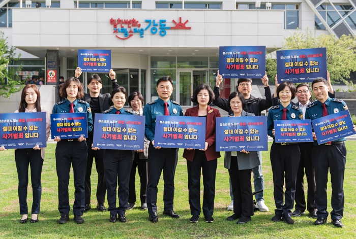 이수희 구청장은 17일, 강동구 청사 앞에서 강동경찰서장, 그리고 구청·경찰서 직원들과 함께 메시지 피켓을 들고 청소년 도박 근절에 대한 강한 의지를 표명했다. 이 구청장은 “청소년 도박은 학교폭력 등 2차 범죄로 이어질 가능성이 있어 반드시 근절해야 한다”며, “우리 구도 청소년 도박의 위험성을 널리 알리고 청소년의 안전한 성장 환경 조성을 위해 적극 노력하겠다.”라고 챌린지 동참 의사를 밝혔다.