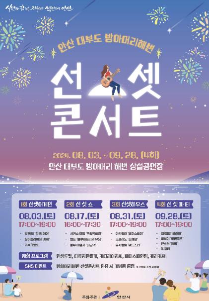 방아머리해변 상설공연장(단원구 대부황금로 1485-1 일원)에서 열리는 공연은 대부도를 찾은 피서객과 시민에게 즐거움과 힐링의 시간을 선사하고자 마련된 행사다. 낙조와 해변에서 모티브를 얻은 4가지 공연 컨셉을 바탕으로 모든 세대가 함께 즐길 수 있는 다채로운 음악과 공연, 체험 프로그램 등으로 구성된다.