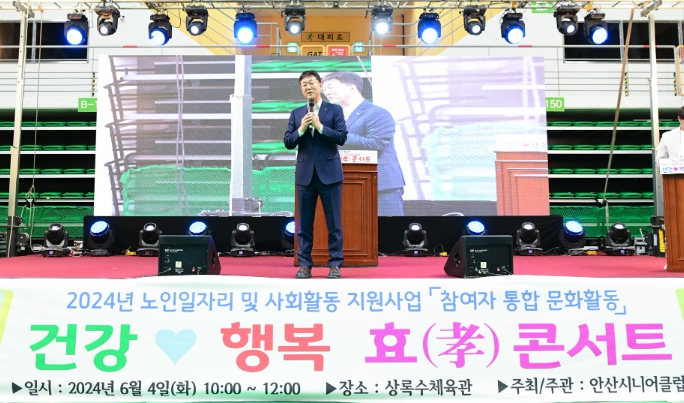 [뉴스서치] 안산시는 지난 4일 상록수체육관에서 안산시니어클럽 주관으로 올해 노인일자리사업에 참여 중인 어르신을 응원하기 위한 ‘건강․효(孝) 콘서트’가 1,600여 명의 어르신이 참석한 가운데 성황리에 개최됐다고 5일 밝혔다.