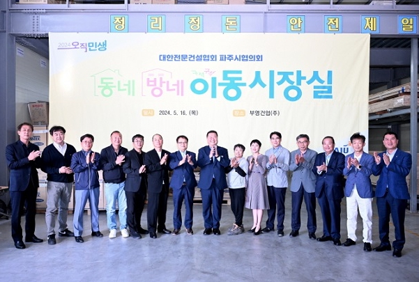 파주읍 봉암리 소재 부영건업(주)에서 열린 이동시장실에는 기세광 대한전문건설업회 파주시지회장을 비롯해 파주시협의회 회원 등 50여 명이 참석했다.