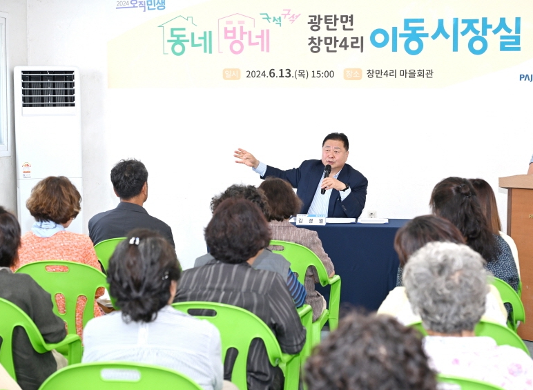 ‘이동시장실’은 지역주민과 보다 가까운 곳에서 소통하고, 시민의 작은 목소리라도 시정에 반영하려는 김경일 시장의 의지가 담긴 시정 역점시책으로 이번 창만4리 방문으로 93회째를 맞는다.