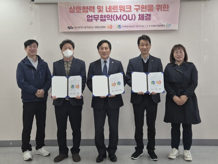 [뉴스서치] 동구치매안심센터는 지난 20일, 주택관리공단 대구안심 1·3주거행복지원센터와 업무협약을 맺고, 치매 돌봄 사각지대 해소를 위해 협력하기로 했다.