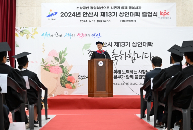 이날 졸업식에는 이민근 시장을 비롯해 제13기 상인대학 졸업생 등 50여 명이 참석한 가운데, 교육 참여도가 우수한 졸업생 6명에 대한 표창장 수여와 함께 졸업생들의 마음을 담은 감사패를 이 시장에게 전달하는 시간도 가졌다.