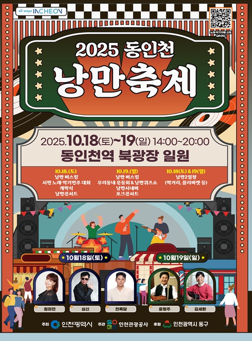 [뉴스서치] 인천광역시는 오는 10월 18일부터 19일까지 이틀간 동인천역 북광장에서 ‘2025년 동인천 낭만축제’를 개최한다고 밝혔다.