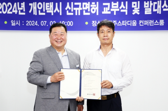 [뉴스서치] 파주시는 7월 2일 파주스타디움 대회의실에서 2024년 개인택시운송사업 신규 면허 교부식을 개최했다.