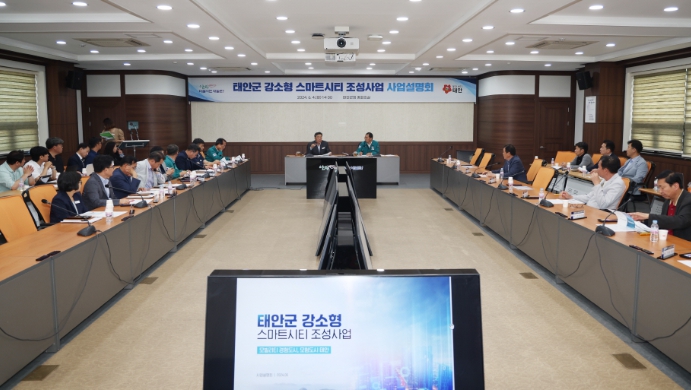 군은 4일 군청 중회의실에서 가세로 군수 등 군 관계자와 용역사 관계자, 지역 주민 등 30여 명이 참석한 가운데 ‘태안군 강소형 스마트시티 조성 사업 사업설명회’를 열고 사업의 주요 내용과 추진 방향을 군민과 공유하는 시간을 마련했다고 밝혔다.