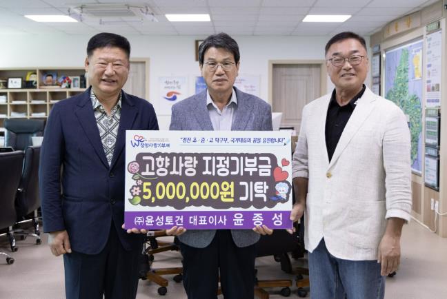 [뉴스서치] 청양군은 윤종성가 지난 17일 고향사랑e음을 통해 정산 탁구부에 5백만 원을 지정기부하고 19일 군을 방문하여 기탁식 행사를 가졌다고 밝혔다.
