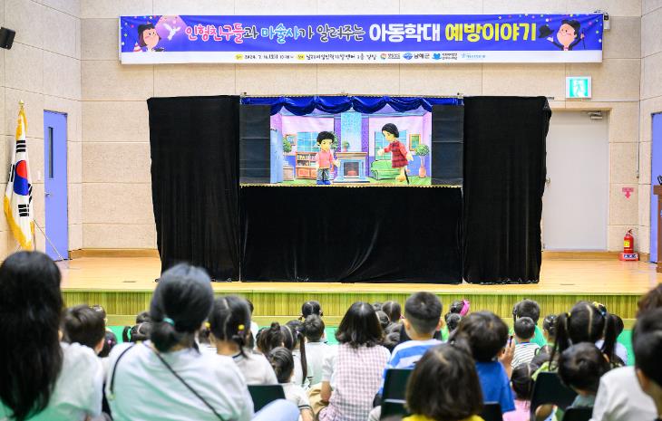 공연팀은 신체·정서·성학대·방임 등 4가지 학대 상황을 재현해 아동학대 상황에서의 대처 방법과 신고 요령 등을 아동의 눈높이에 맞춰 전달했다. 또한, ‘아동학대 예방 캠페인 및 그림 전시전’도 진행됐다.