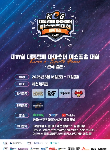 [뉴스서치] 문화체육관광부는 8월 16일부터 17일까지 제천체육관에서 ‘제17회 대통령 배 아마추어 이스포츠 대회’ 전국 결선을 개최한다. 이번 대회는 네이버 치지직, 숲(SOOP), 유튜브를 통해 온라인으로 생중계하며, 누구나 현장에서 무료로 관람할 수 있다.