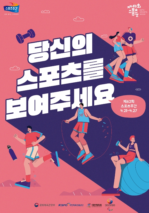 [뉴스서치] 문화체육관광부는 4월 21일부터 27일까지 정부 부처와 지자체를 비롯해 국민체육진흥공단, 대한체육회 등 체육단체와 함께 ‘제62회 스포츠주간’을 시행한다.